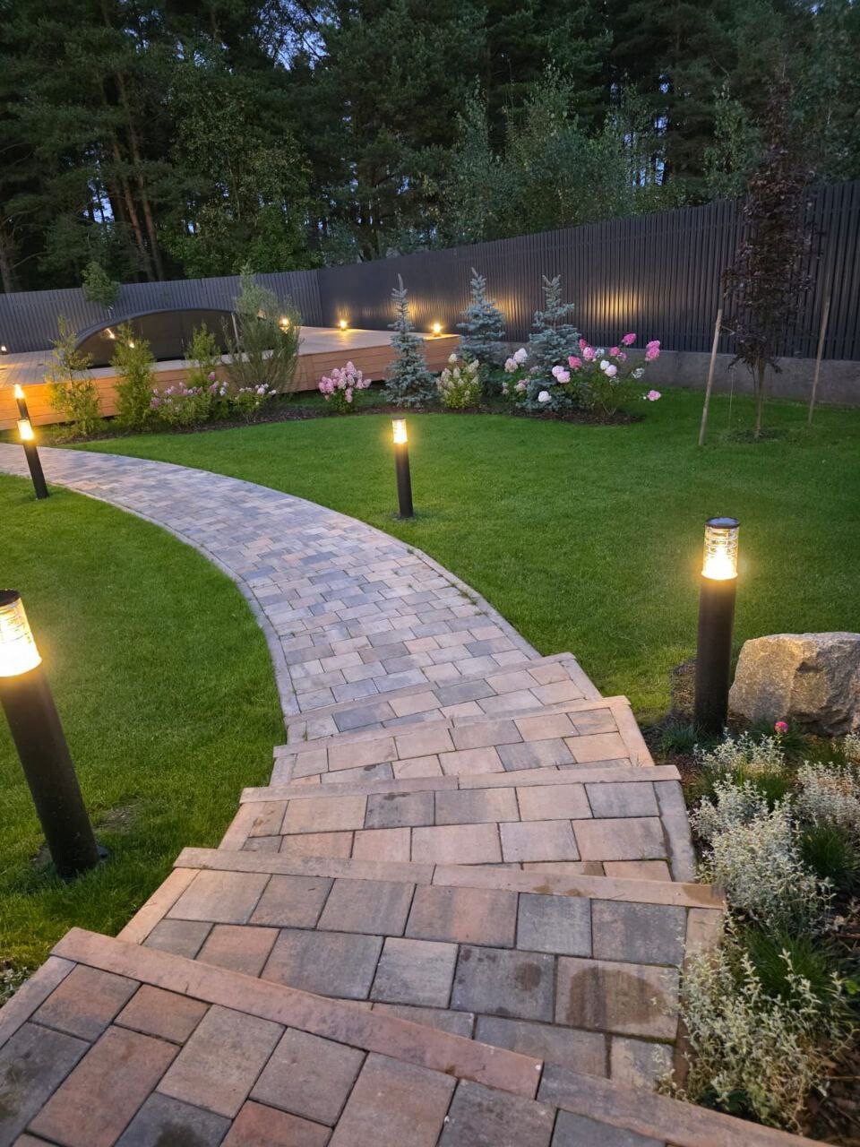 Мощение тротуарной плиткой и природным камнем