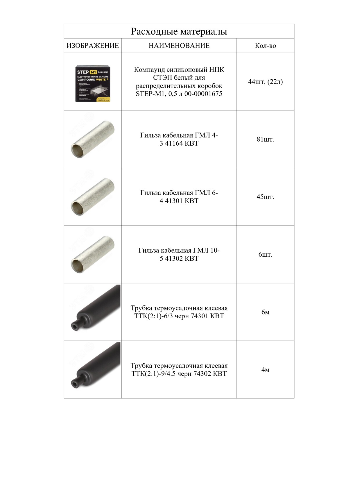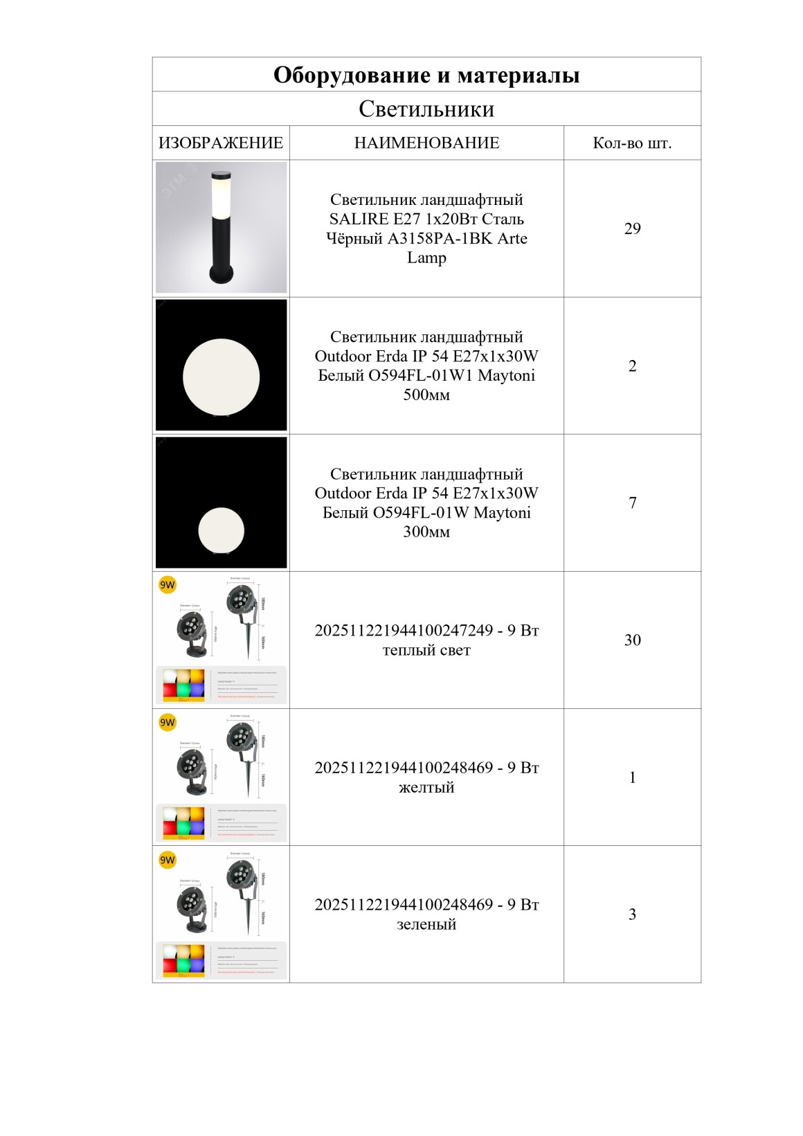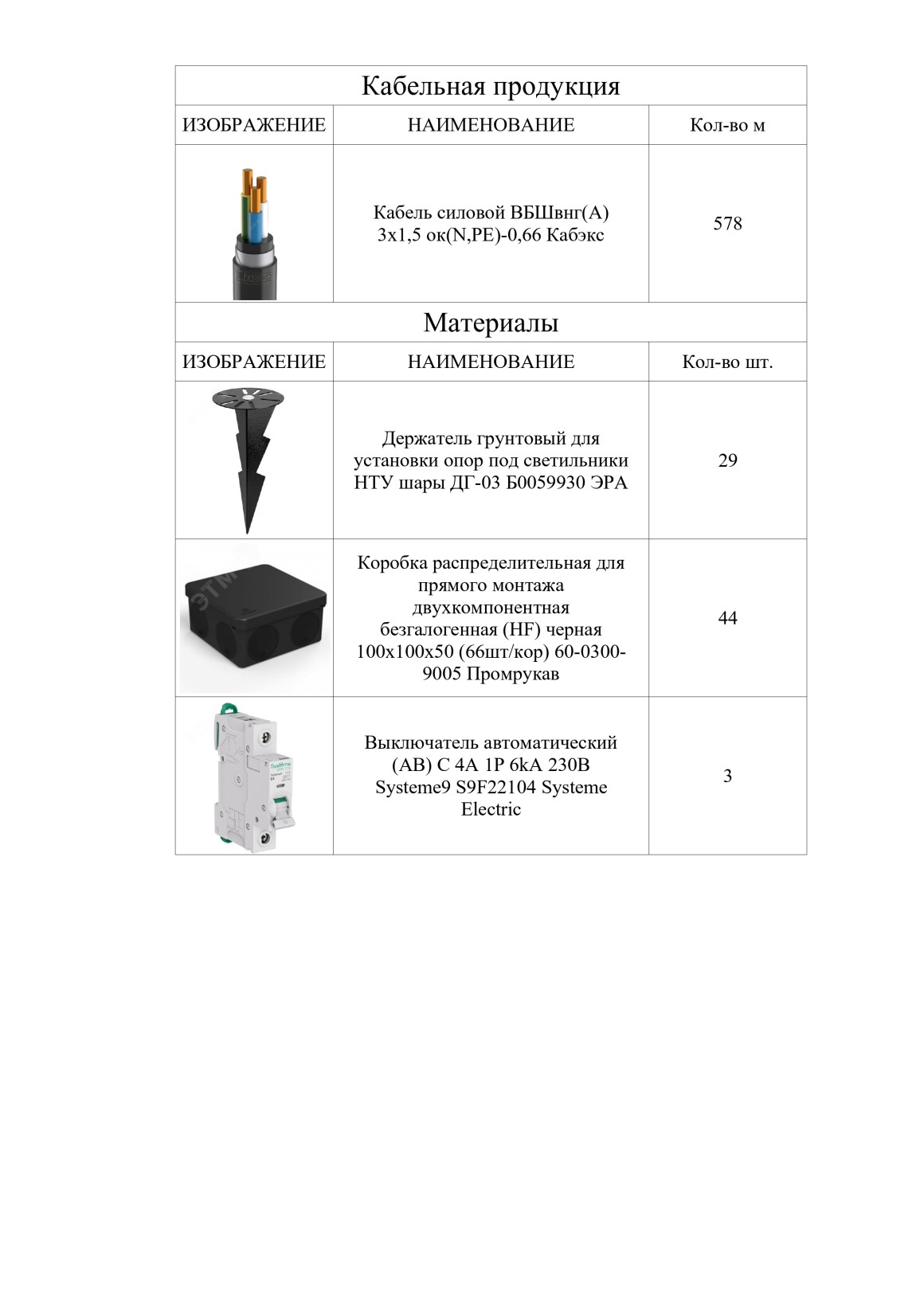 Ведомость оборудования и материалов